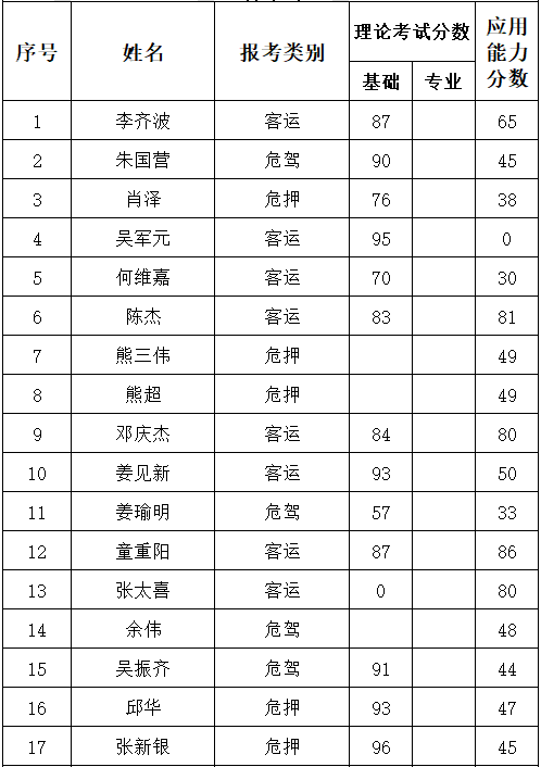 鄂州市道路运输从业人员资格证考试成绩通报(2025年10月20日考试)