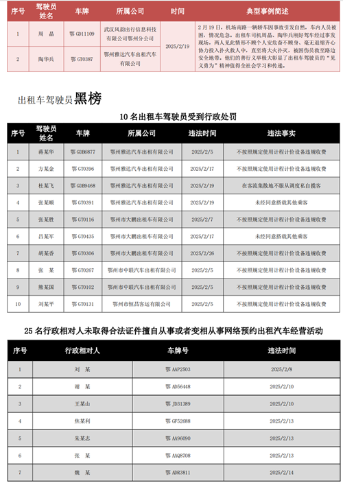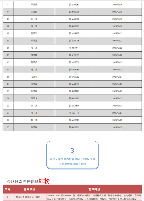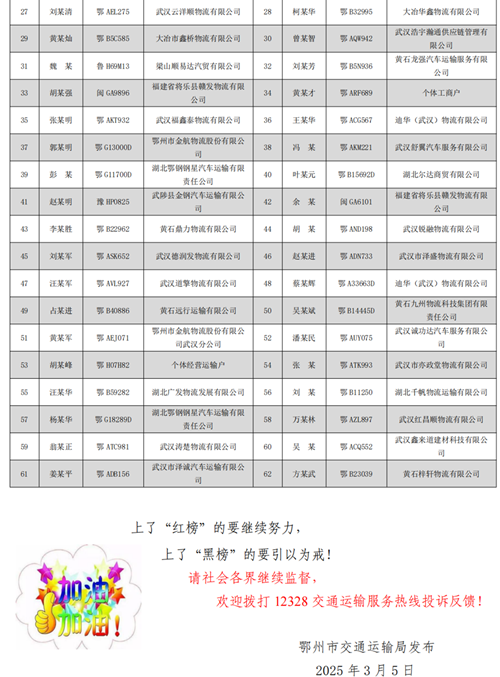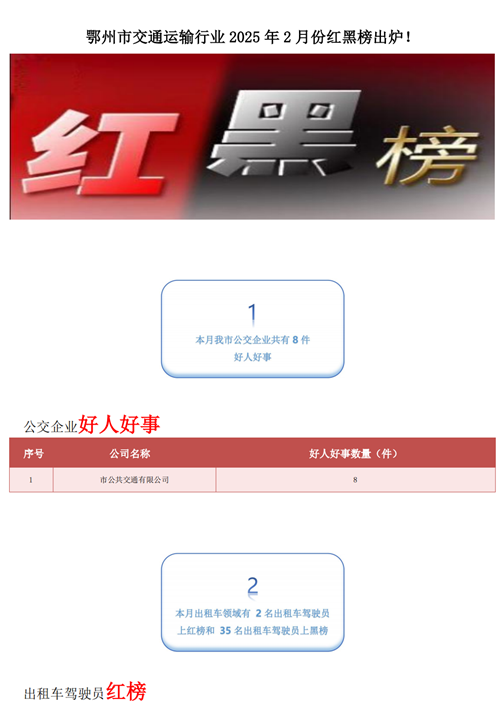 鄂州市交通运输行业2025年2月份红黑榜出炉!
