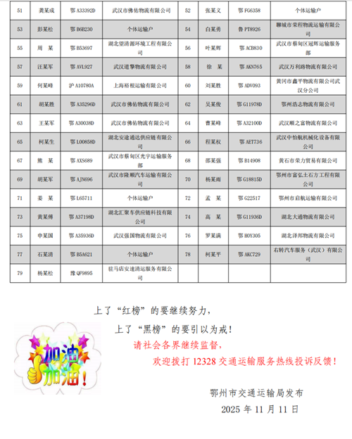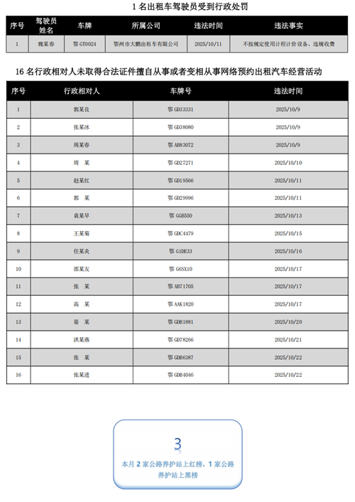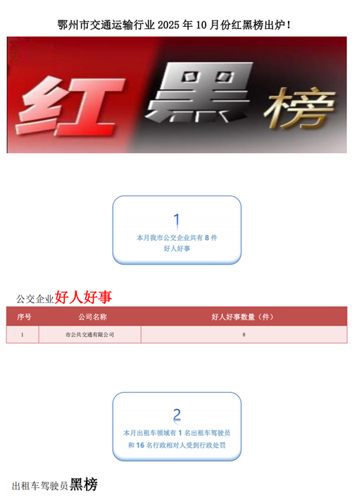 鄂州市交通运输行业2025年10月份红黑榜出炉!