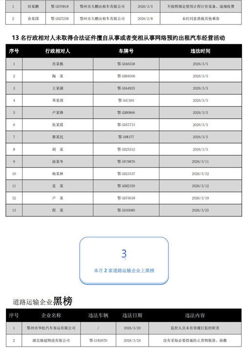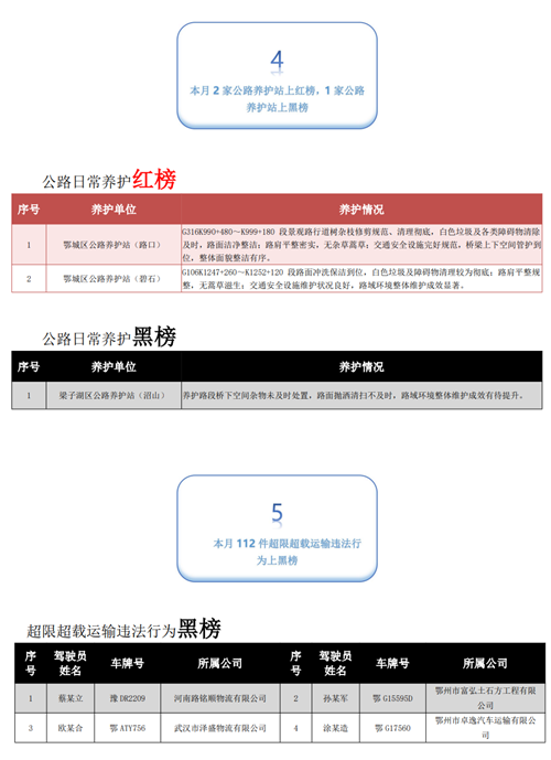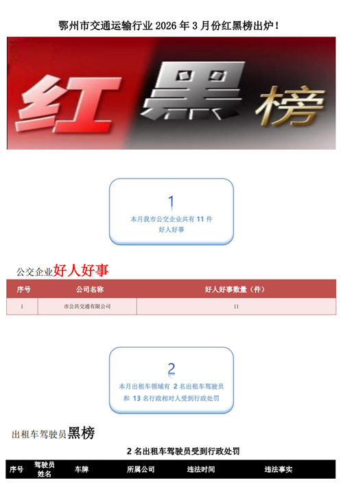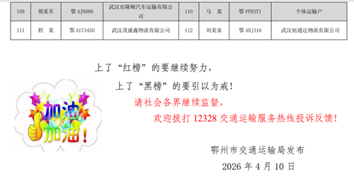 鄂州市交通运输行业2026年3月份红黑榜出炉!